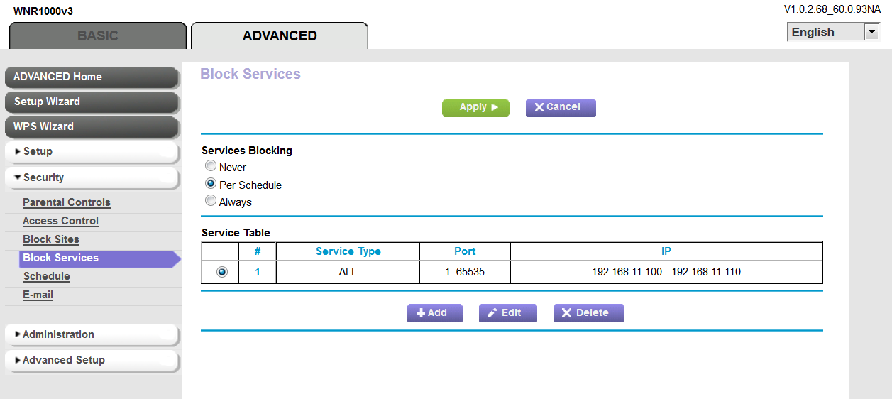 Also note that there’s only one schedule, and it applies to all devices for which the IP address falls within the IP address range set up in Block Services.