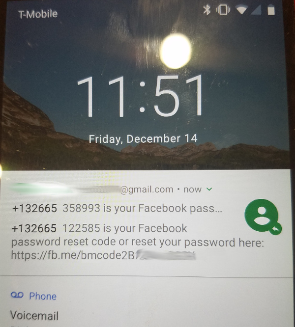 This is what my lock screen looked like after I requested a password reset on Facebook: