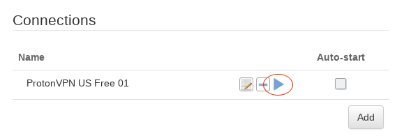 1. Click on the blue “Play” button to start the ProtonVPN IKEv2 connection.