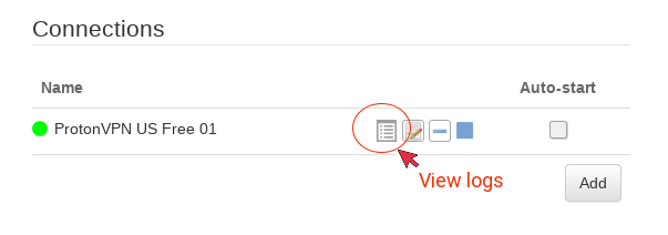 2. If connection is successful, a green dot will appear on the left of the connection configuration line. In case of connection failure, click on the “log” icon to view IKEv2 logs.