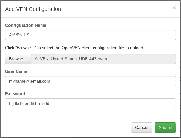 Add an AirVPN OpenVPN connection