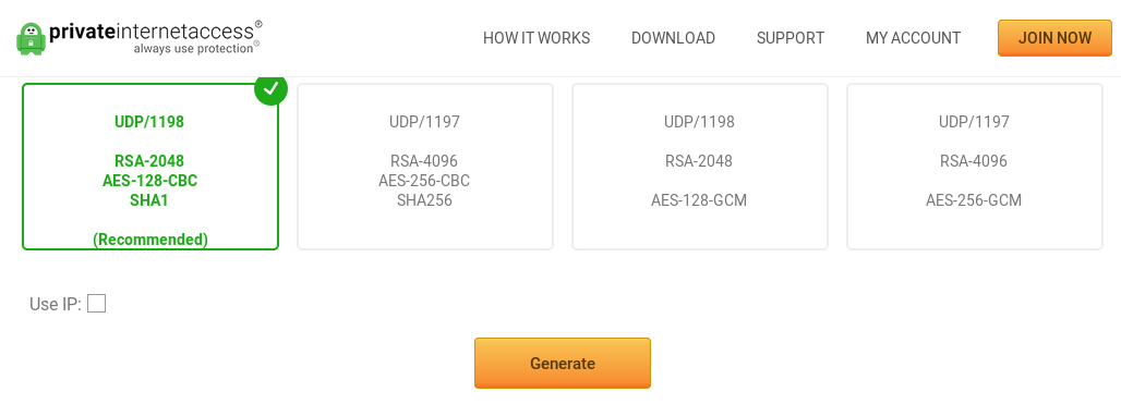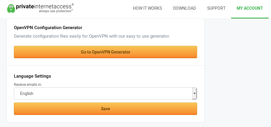Under the MY ACCOUNT tab, click Go to OpenVPN Generator