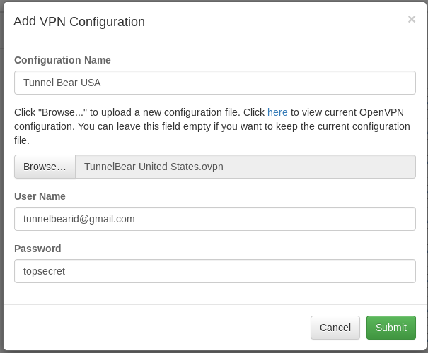 Although TunnelBear doesn’t officially support running OpenVPN on the router, it does provide OpenVPN configuration files to be used on Linux. We can use these files to set up OpenVPN connections to TunnelBear on the pcWRT router.
