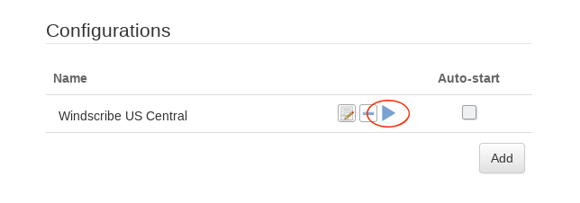 Click on the blue “Play” button to start the Windscribe VPN IKEv2 connection.