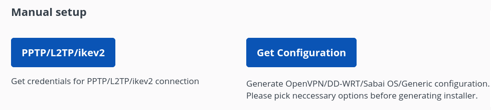 Scroll down to the “Manual setup” section, click on the “Get Configuration” button.
