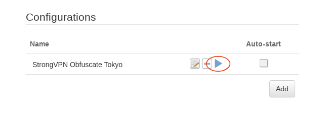 Click on the blue “Play” button to start the StrongVPN OpenVPN connection.