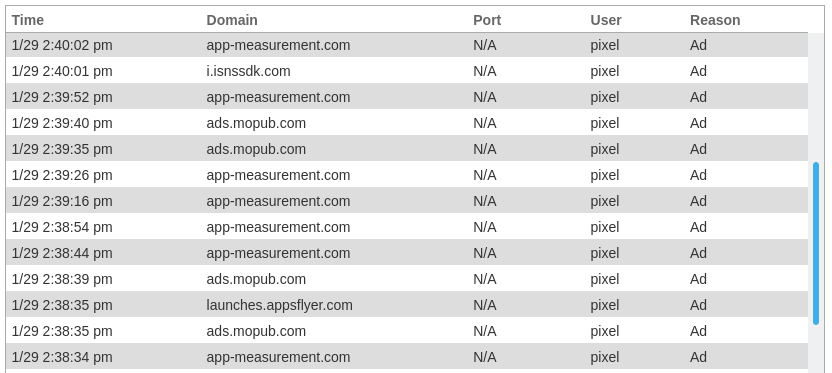 In case something goes wrong, you can take a look at the Internet logs to see which domains have been blocked (for your device) for what reason. If a domain has been identified as ad, the block reason will be Ad.
