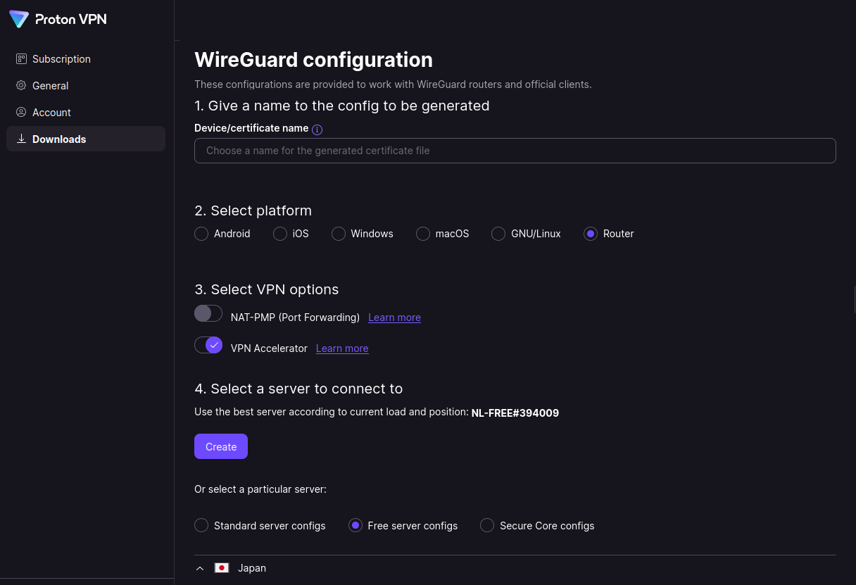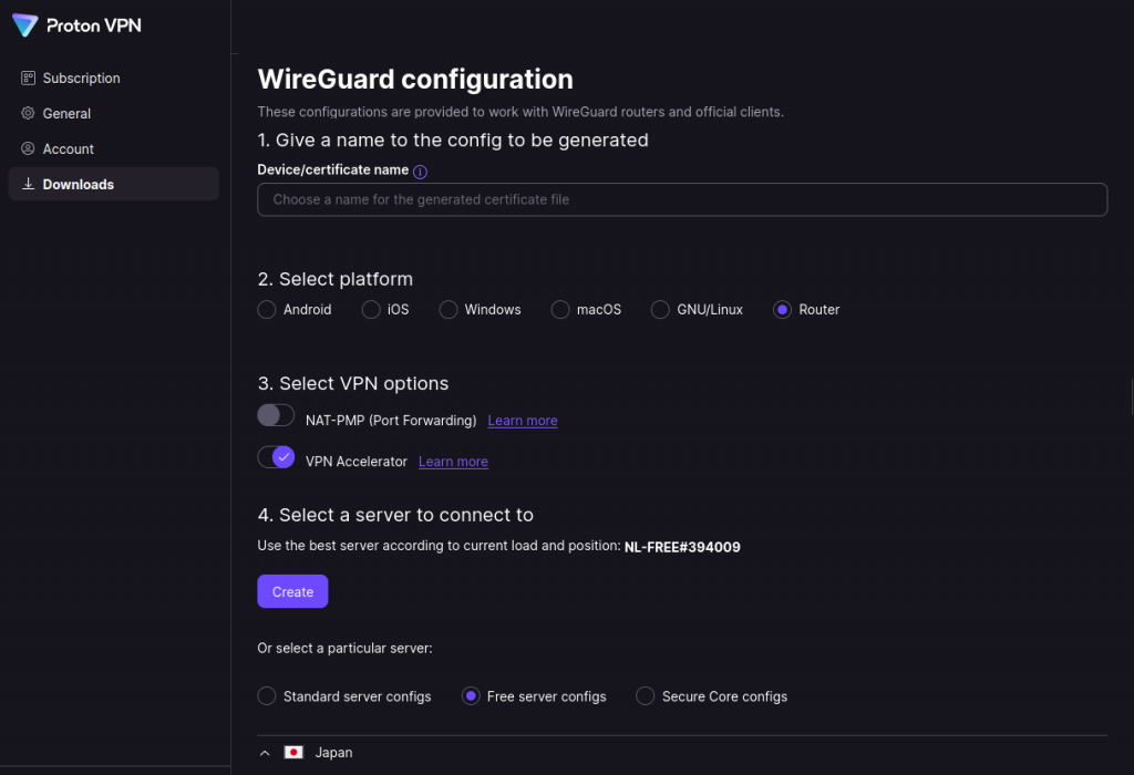Create a Proton VPN WireGuard connection