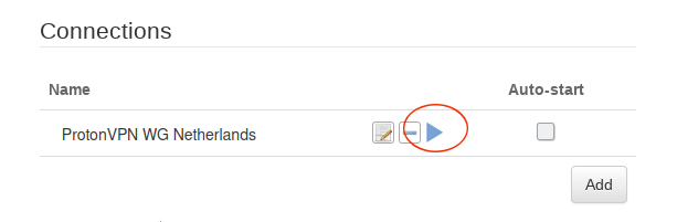 Click on the blue “Play” button to start the Proton VPN WireGuard connection.
