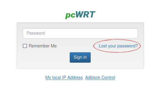 The pcWRT router provides a more convenient way to reset your router password: by email. This is what you need to do: