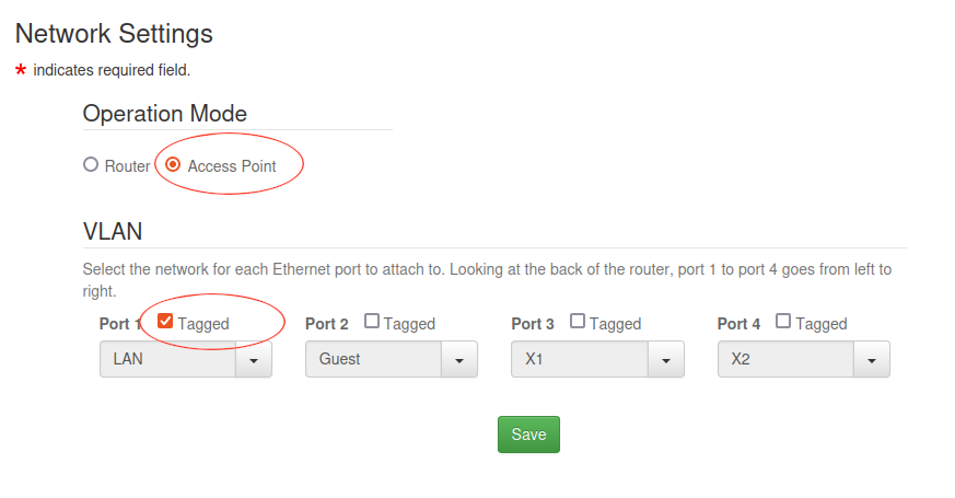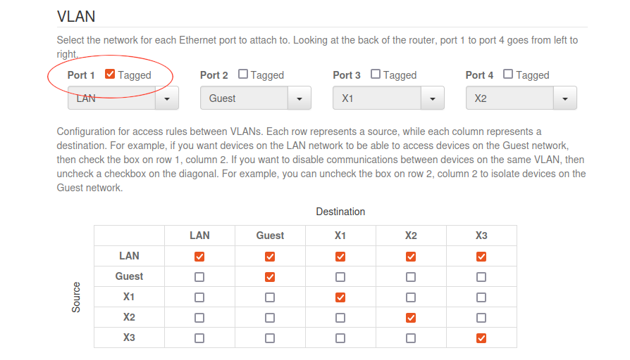Leave the tagged port on LAN. You can omit the tagging if you’re not using the VLAN feature.